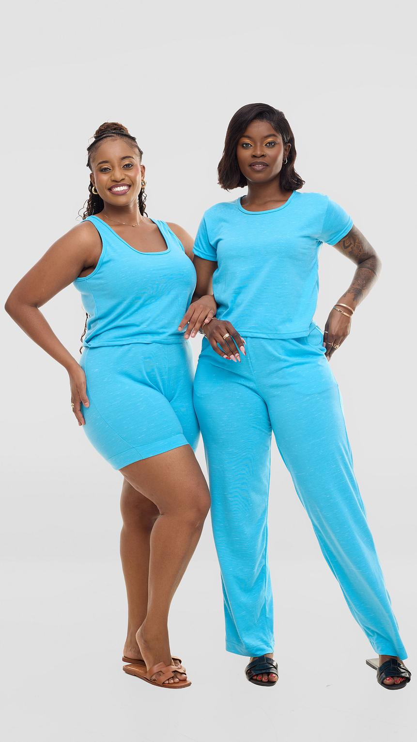 Elevate your everyday comfort with this effortlessly refined Azure four-piece lounge wear set, designed for the woman who loves versatility without compromising on style.