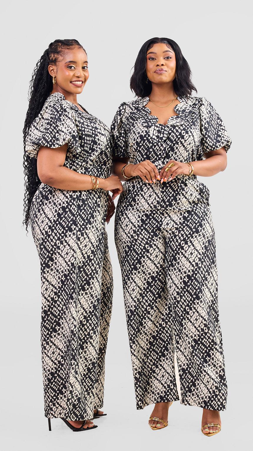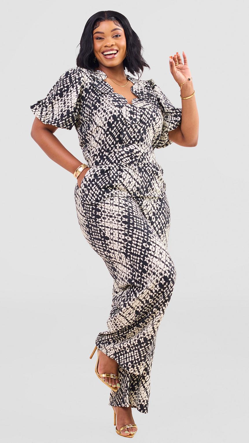 Turn heads in this Black Printed Linen Jumpsuit. Designed to flatter every curve while keeping you effortlessly stylish. Made from soft, breathable fabric, it features a defined belted waist that enhances your silhouette, short sleeves for easy movement and straight-leg pants that create a sleek, elongated look.